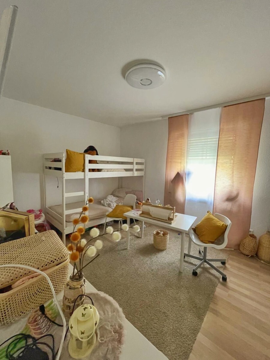 Das erste Obergeschoss, das bis vor kurzem vermietet war, besticht mit einem identischen Grundriss wie das Erdgeschoss. Zusätzlich verfügt es über einen wunderbar großen Balkon, der in der Sonne liegt und einen idyllischen Rückzugsort bietet.
